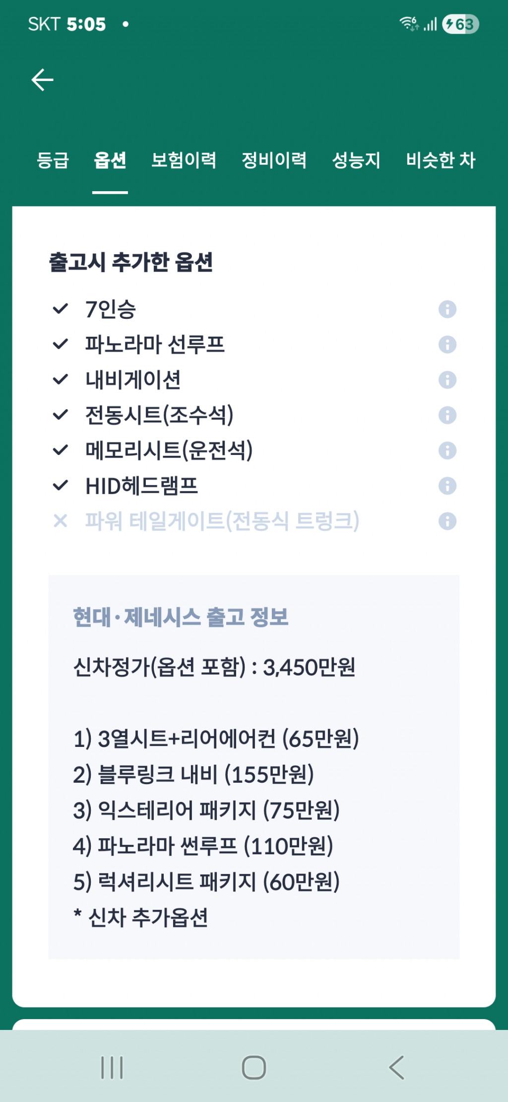 | 주요골격 부위 | ○ 필라 ○ 사이드실 패널 ○ 루프 ○ 쿼터 패널 ○ 프론트 패널 ○ 리어패널 ○ 크로스맴버 ○ 사이드맴버 ○ 인사이드패널 ○ 휠하우스 ○ 대쉬 패널 ○ 플로어 패널 ○ 트렁크 플로어 | ||